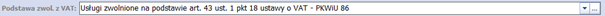Uwaga! Wpisanie wartości w polu „Podstawa zwol. z VAT” i zapisanie rachunku, skutkuje jej automatycznym podpowiadaniem w procesie tworzenia kolejnego dokumentu rozliczeniowego.